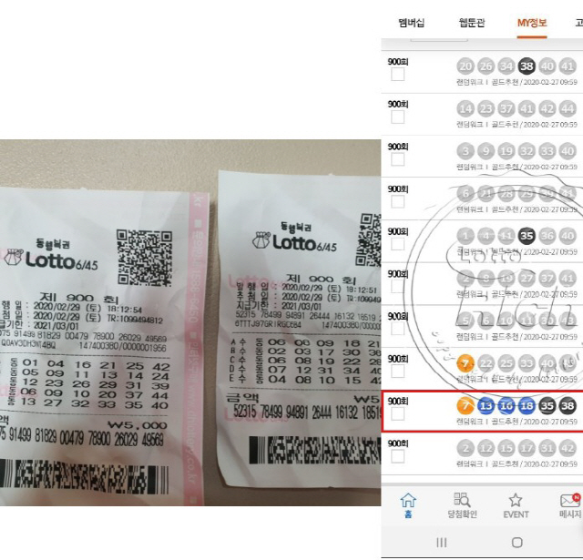 - 경상북도에 사는 A씨는 4일 로또복권 커뮤니티 사이트 로또리치에 "로또번호 잘못 마킹해 1등 33억원 놓친 사연"의 제목으로 올린 후기에서 "로또 어플리에이션(앱)으로 지난달 27일 오전 9시 59분에 "7, 13, 16, 18, 35, 38"이라는 900회 분석번호를 받은 내역이 있다"면서 "하지만, 로또 판매점에서는 이 앱이 아닌, 평소 습관대로 최신 문자에 있는 번호(899회차)를 마킹해 구매하는 바람에 1등을 놓쳤다"며 진한 아쉬움을 …