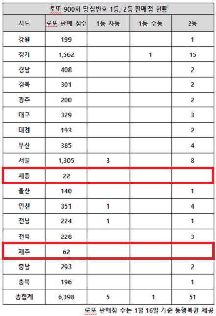 - 로또 900회 당첨번호 1·2등 57명···"세종 無 행진 언제 끝나나"