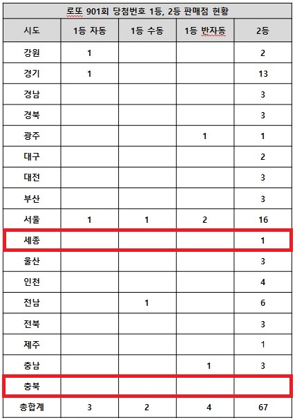 - 로또 901회 당첨번호 1·2등 76명···"세종 드디어 있고 충북 없고"