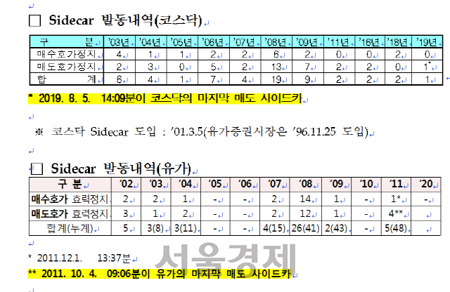 - 거래소, 유가증권시장 매도 사이드카 발동… 9년만에 처음