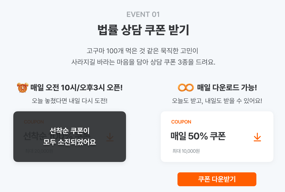 로톡에서는 가끔 쿠폰도 제공해서 더욱 저렴하게 상담을 받을 수 있습니다. 저도 쿠폰을 활용해서 상담을 받았는데, 처음엔 법률 상담이 비쌀 거라고만 생각했었지만, 예상 외로 저렴해서 큰 부담 없이 문제를 해결할 수 있었습니다. 만약 상담 비용이 걱정되신다면, 로톡에서 제공하는 쿠폰을 활용해보는 것도 좋은 방법입니다.